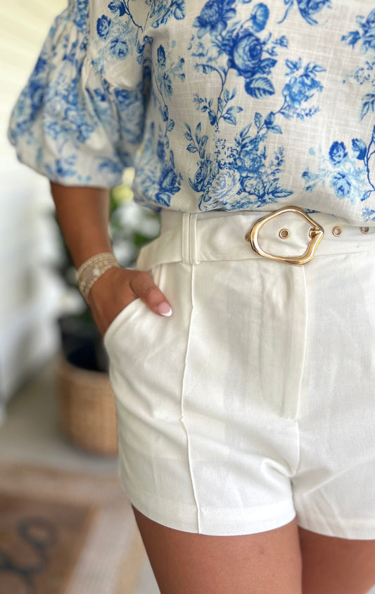 Gold Belted White Shorts