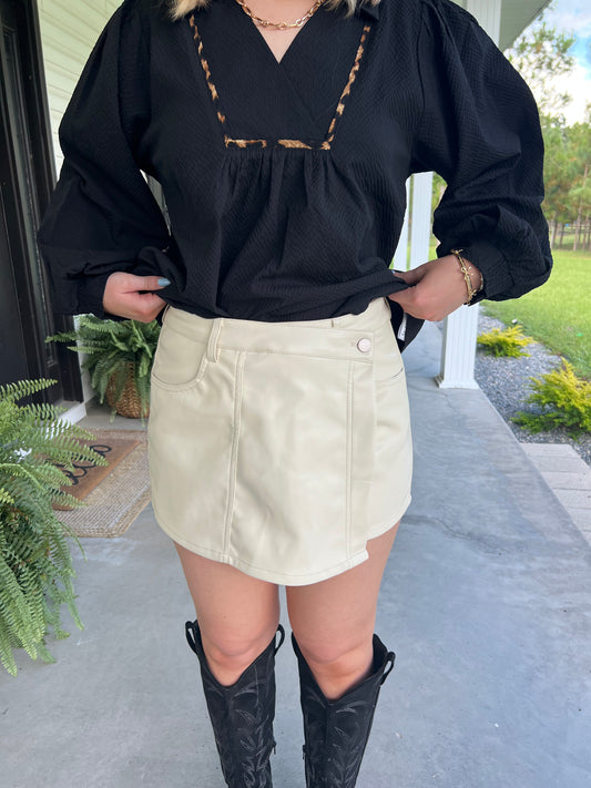 Cream Faux Leather Skort