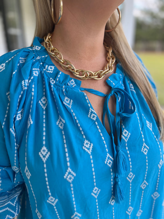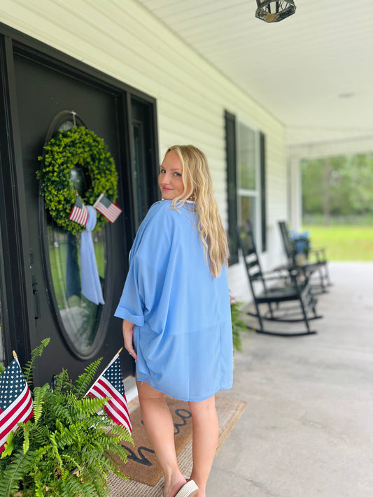 Blue Seas Scalloped Flutter Sleeve Blouse